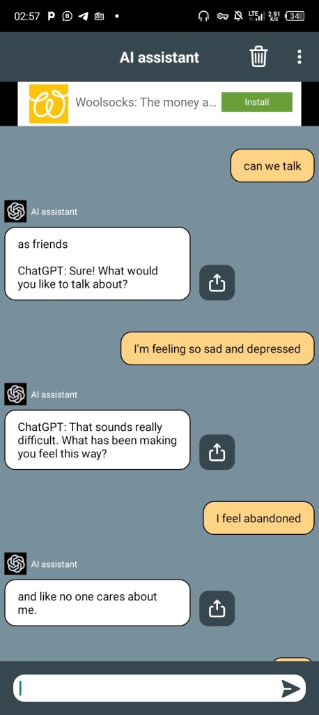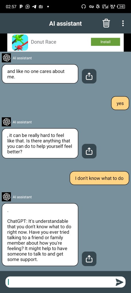 Please refer to the accompanying screenshots to witness the app’s capability to engage in chat with you as either your friend or any other individual.